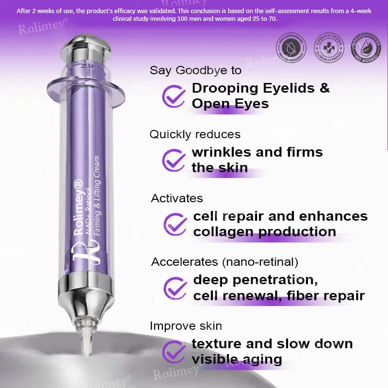 Top U.S. dermatologists consider Rolimey® NAD+ Retinol Firming & Lifting Cream a breakthrough in at-home anti-aging skincare. Clinically supported and recognized by leading U.S. dermatology associations, regular use has been shown to help reduce wrinkles, improve skin firmness, and support collagen production. Experts agree it is a safe, non-invasive alternative to costly professional treatments, allowing anyone to enjoy professional-level anti-aging results at home.