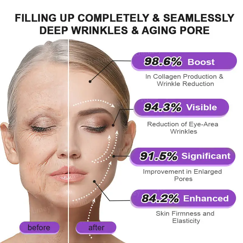 It penetrates deep to stimulate the natural production of collagen, effectively smoothing out deep-set wrinkles and fine lines.