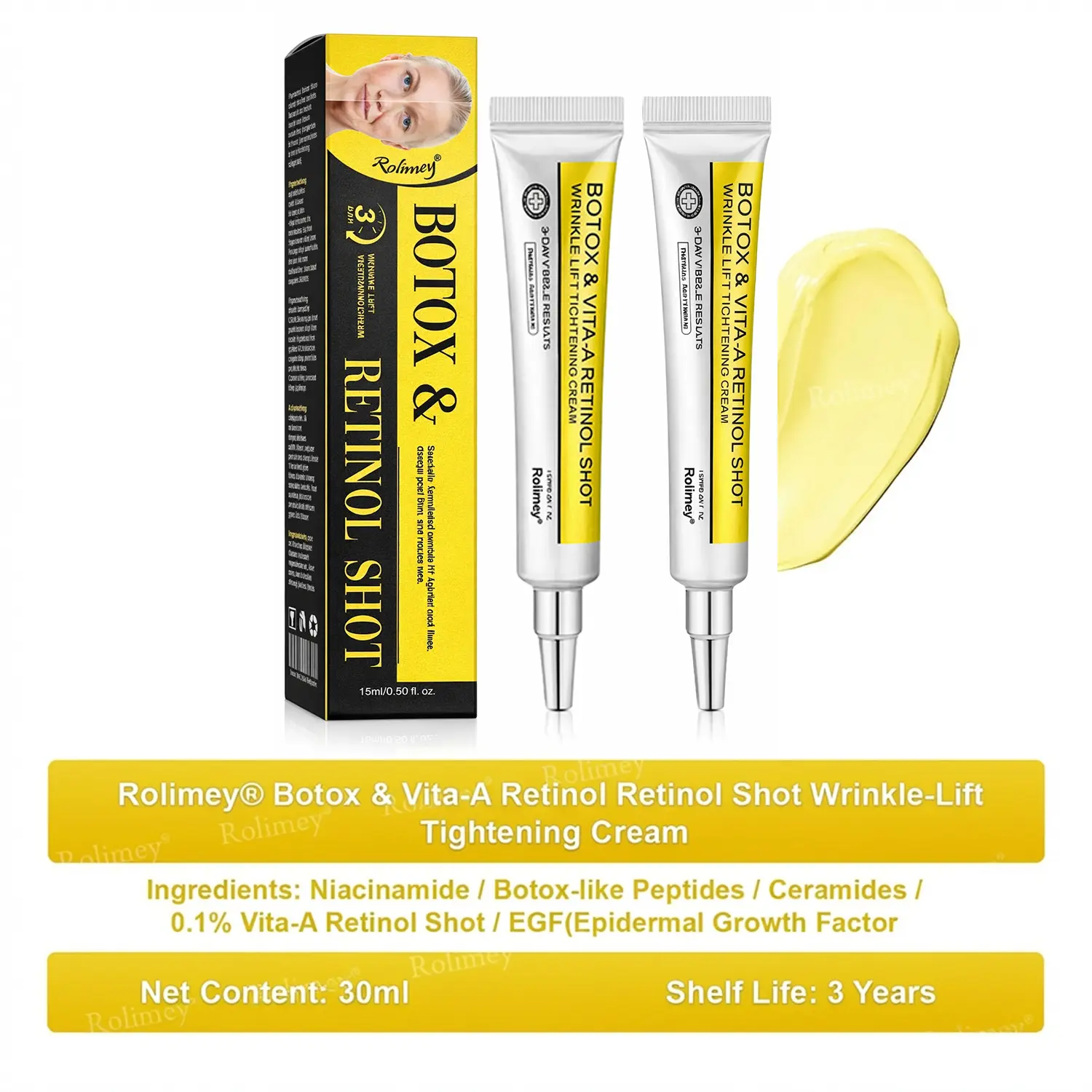 Botox & Vita Cream is infused with advanced Botox-like peptide complexes that help relax facial muscle tension, reducing dynamic wrinkles caused by repeated expressions. At the same time, they stimulate collagen and elastin production, restoring firmness and resilience for naturally lifted and youthful-looking contours.